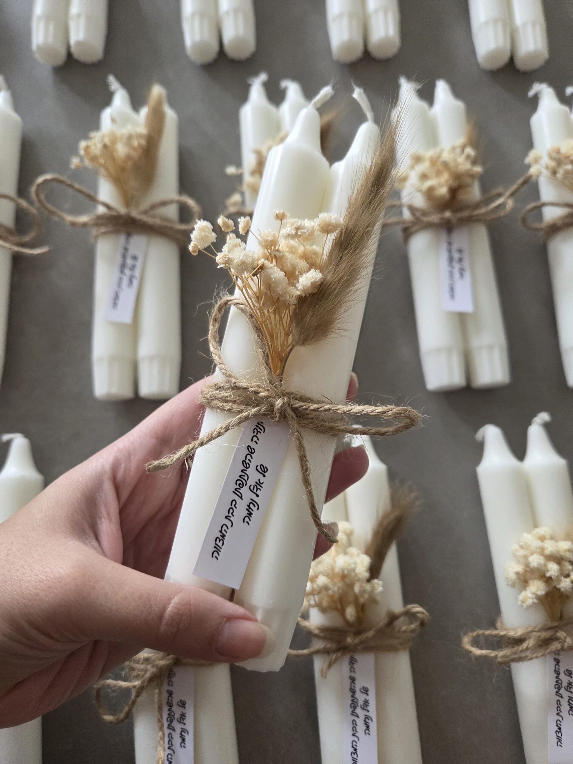 מארז הבדלה עם ברכון בהקדשה אישית, נר הבדלה ובשמים – נר צמה מעוגל לבן