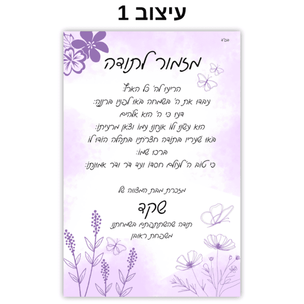 הפתיעו את האורחים שלכם בבת המצווה עם ברכון הכולל הקדשה אישית עם שם החוגגת ותאריך ובצירוף מתנה לבחירתכם: